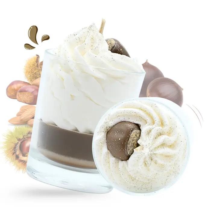 Entrez dans un univers de gourmandise avec la bougie gourmande châtaigne grillée en cire végétale de chez Les Fées Mères.
