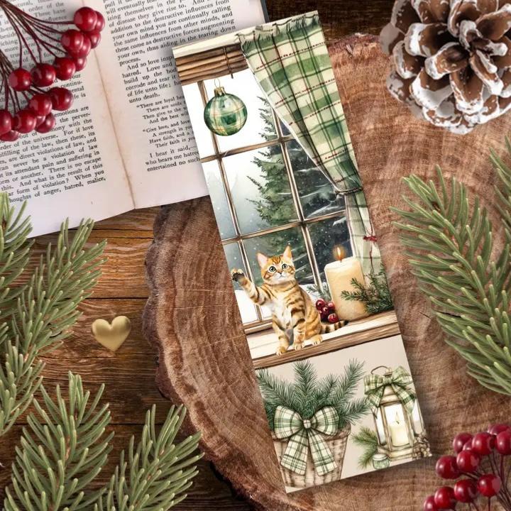 Découvrez ce marque-page en papier pelliculé épais, orné d'une illustration chaleureuse qui évoque l'hiver et ses plaisirs cosy et féériques.