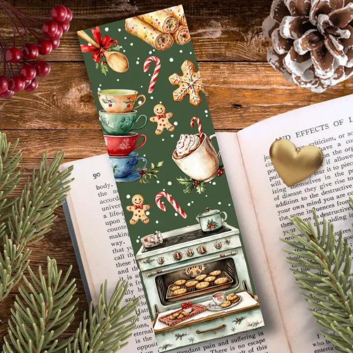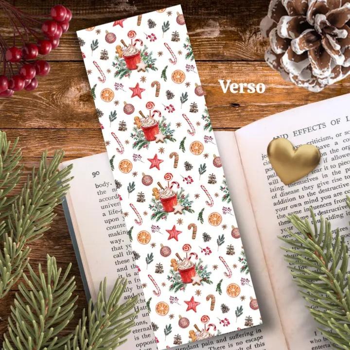 Découvrez ce marque-page en papier pelliculé épais, orné d'une illustration chaleureuse qui évoque l'hiver et ses plaisirs cosy et féériques.