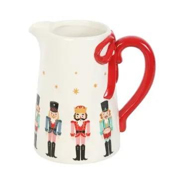 Apportez une ambiance festive à la maison avec ce pichet en céramique à motif de casse-noisette, complété par un nœud décoratif sur la poignée.